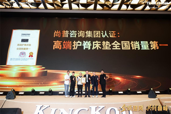 值得一提的是,尚普咨询集团合伙人曹颉先生受邀而来,在此次峰会上权威颁发了“金可儿,高端护脊床垫全国销量第一”的市场地位声明书。这一殊荣不仅是对金可儿在中国市场卓越产品力与品牌影响力的高度认可,更是对其多年来坚持专业护脊定位、深耕渠道建设、服务中国消费者的最好褒奖。会场响起持久而热烈的掌声,标志着金可儿在中国高端床垫市场的标杆地位得到进一步夯实。