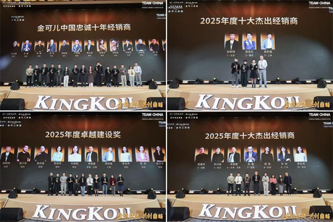 为进一步肯定经销商的付出与协作,金可儿还在经销商峰会现场举办了盛大的颁奖典礼,为在2025年度做出突出贡献的经销商颁发了:“年度非凡贡献奖”、“年度智能产品推广先锋”、“卓越建设奖”、“年度明日之星”、“年度十大·活力新锐城市”、“年度十大·中坚力量城市”、“年度十大杰出经销商”“金可儿中国忠诚十年经销商”