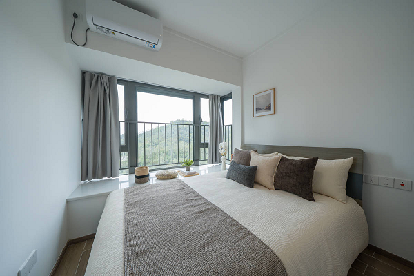 主卧配置广角飘窗,窗外视野通透,可远眺四季变化的自然景观,为租户提供兼具功能性与疗愈性的休憩界面。