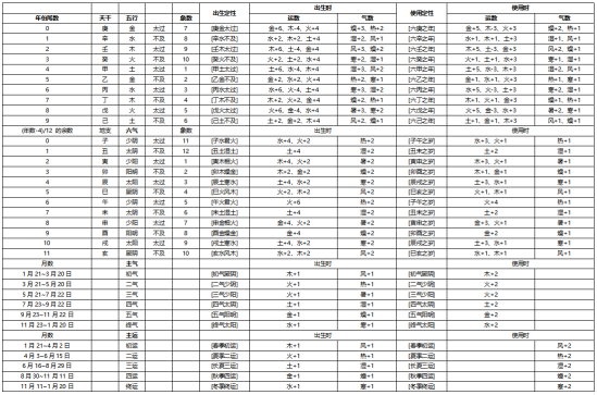 五运六气基于易经,推理运算量十分庞大,以下只是给出了年月运气权重,尚有主客、郁发、胜复等等概念与逻辑不能一一列举。