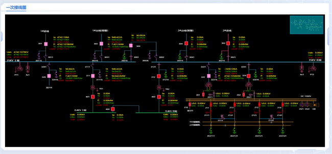 实时监测覆盖全线站所供电系统关键设备,运用力控的软件产品实现对变压器、开关柜、直流牵引等设备运行状态的全时、全景监测,数据体量庞大。通过一次接线图、平面布局图、网络拓扑图等图形化方式,直观呈现设备位置与运行状态,实现数据可视化。系统支持按站所名称、设备类型、设备名称、点位类型及点位名称等多条件组合查询与关键字模糊查询,方便快捷调取实时测点数据。