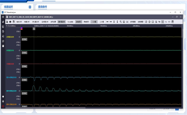 故障录波装置生成的文件记录了故障发生时的电压、电流、频率等电气信息及故障前后的运行状态。系统支持录波文件在线解析、前端可视化展示与文件下载。